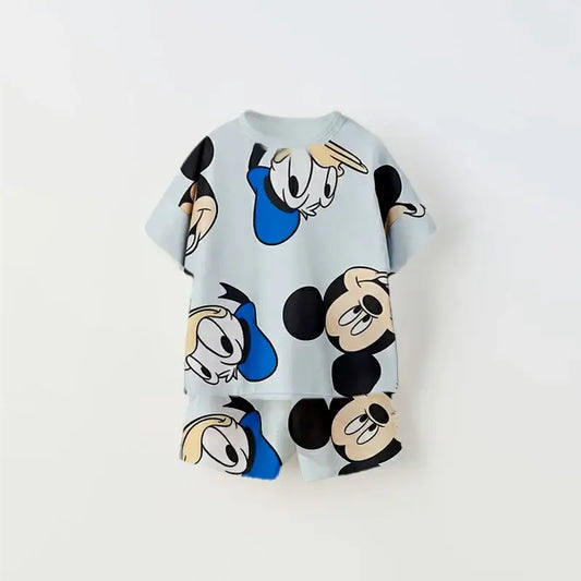 Short Sleeve Tshirt Shorts Two Piece Casual Sports Cotton Wear Babies Boys Round Neck Tops Set Cartoon Printed Summer Clothing