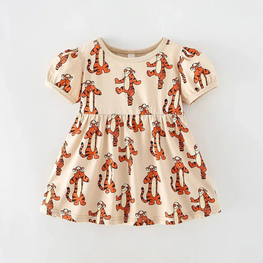 Full-print Winnie Baby Girls Dress Summer Clothing Cartoon Cute Baby Girl Short Sleeve Casual Skirt Children's Clothes Dresses
