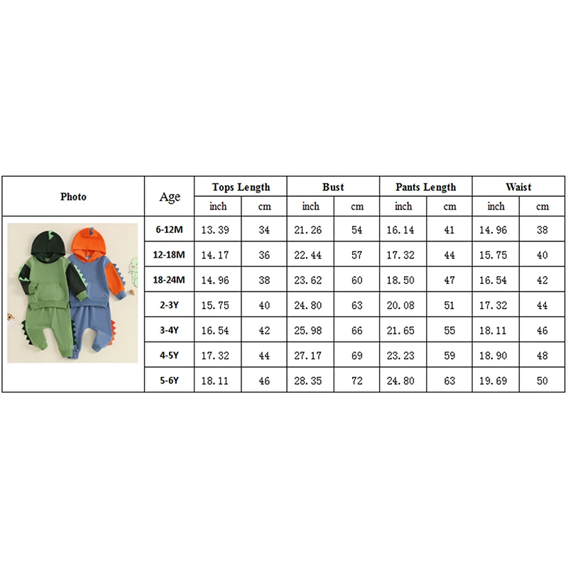 1-6Y Toddler Boy Dinosaur Costume Contrast Color Long Sleeve Hoodie Sweatshirt Elastic Waist Pants 2 Piece Boys Outfits Set