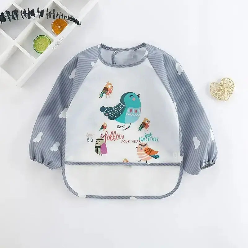 1Pcs Waterproof Cartoon Long Sleeve Art Apron Animal Smock Soft Baby Bib Burp Clothes