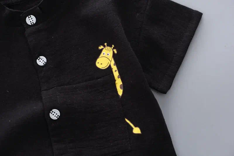 New Summer Hot Sale Toddler Kids Baby Boys Shirt Cartoon Tops Denim Shorts Pants Outfits Set Baby Clothes