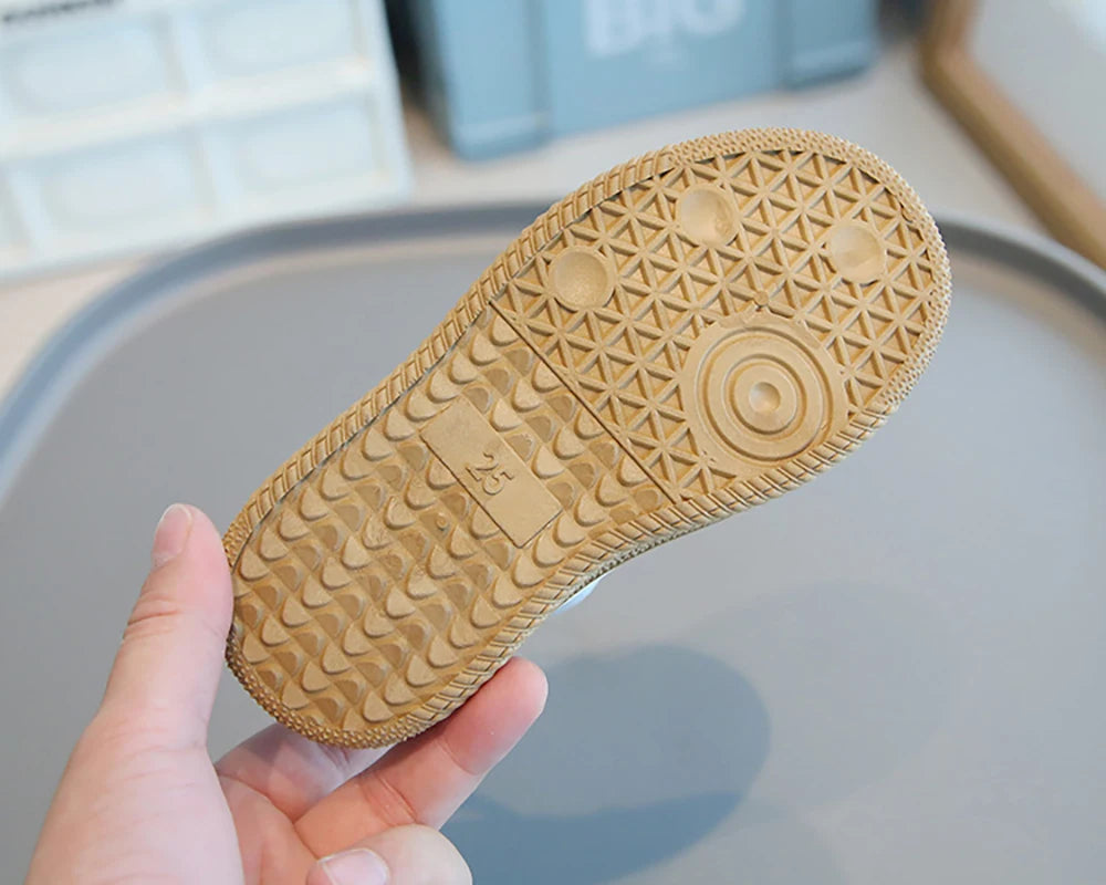A perfect blend of style and safety for tiny explorers. Combining trendy stripes, cutting-edge durability, and ergonomic support, these shoes protect growing feet while keeping them dry and secure. Designed to boost confidence in every step, they prioritize comfort, grip, and natural development.