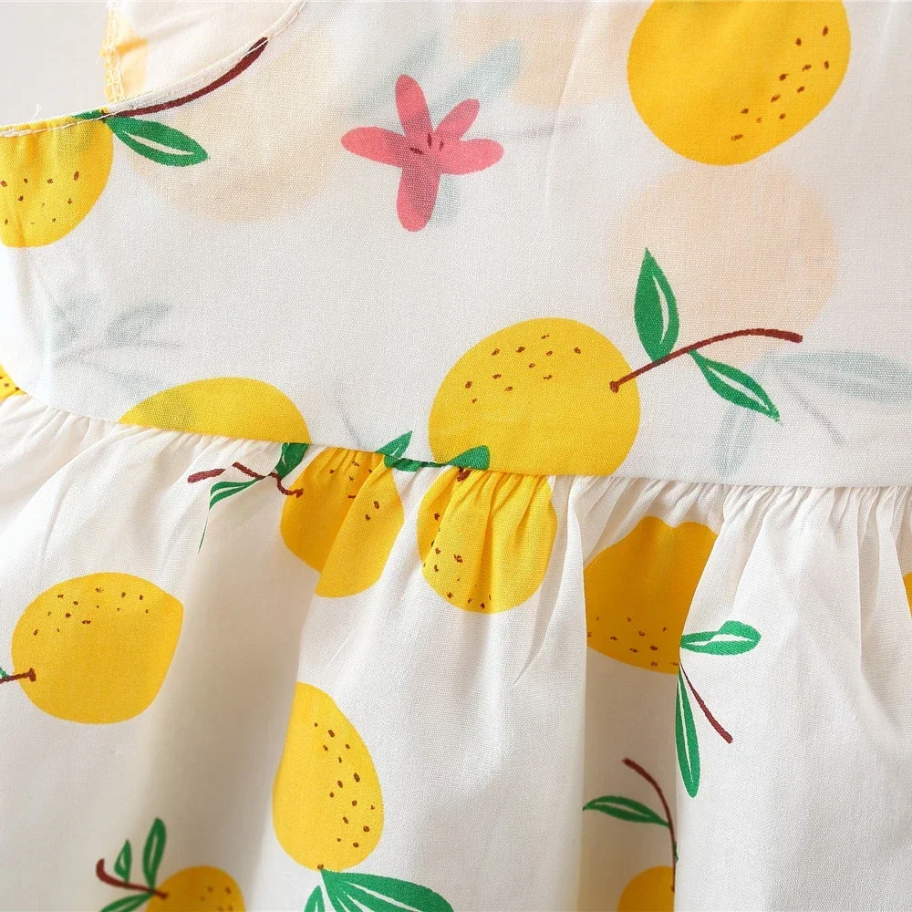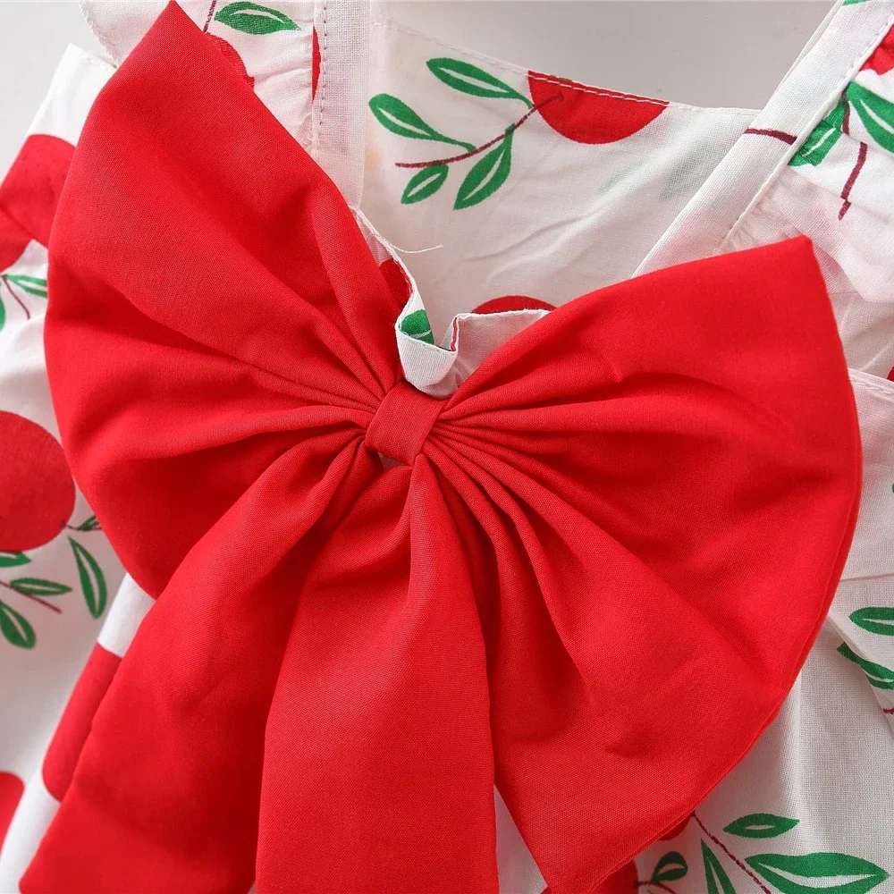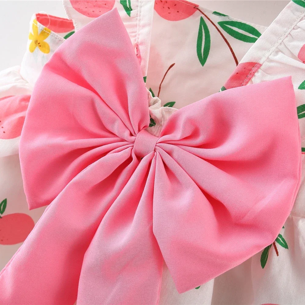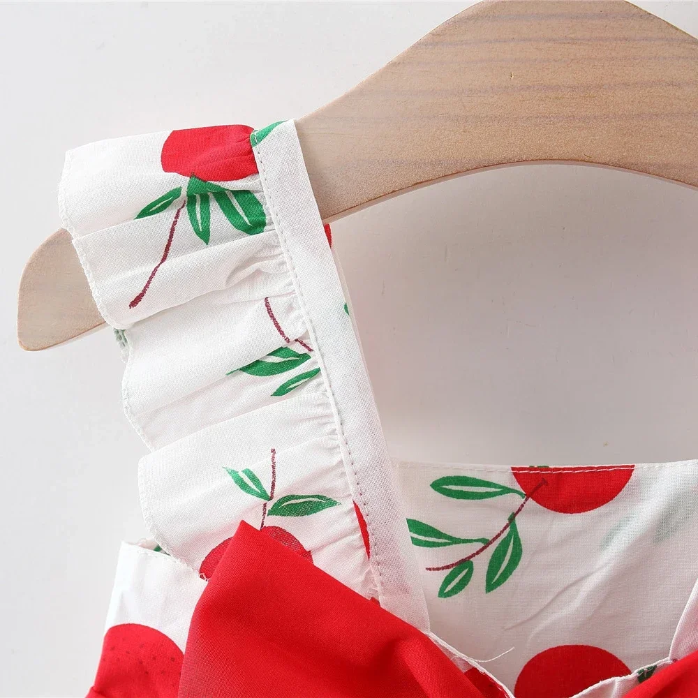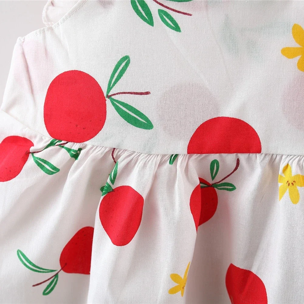 Summer New Girls Dress + Hat 2-Piece Fruit Print Small Fresh Bow Halter Small Flying Sleeve Tmall Princess Dress