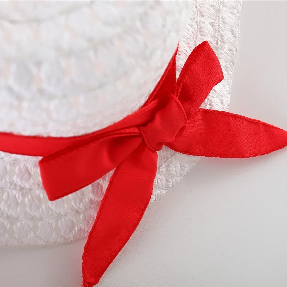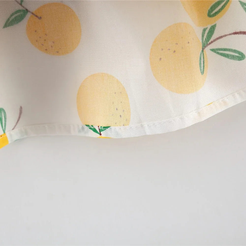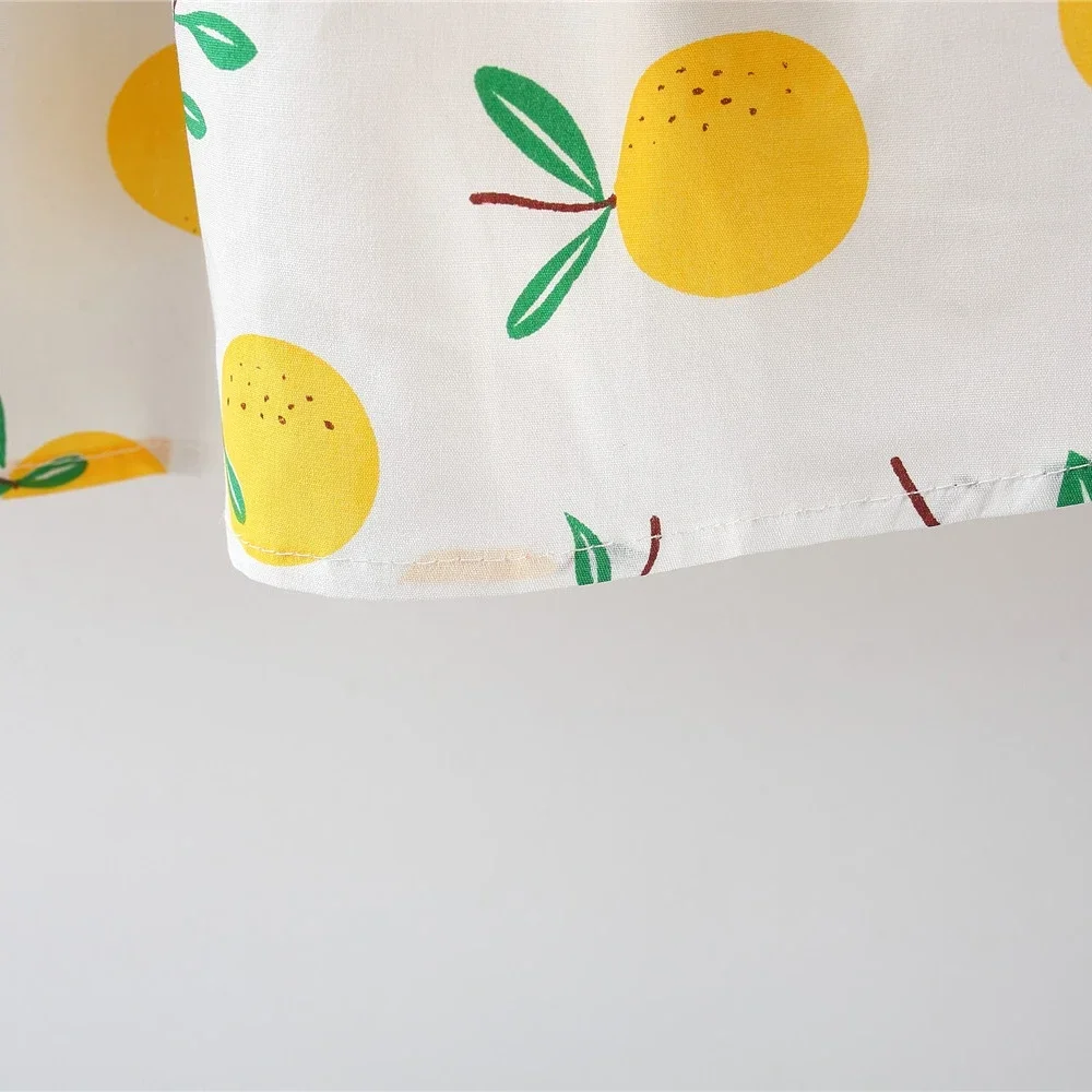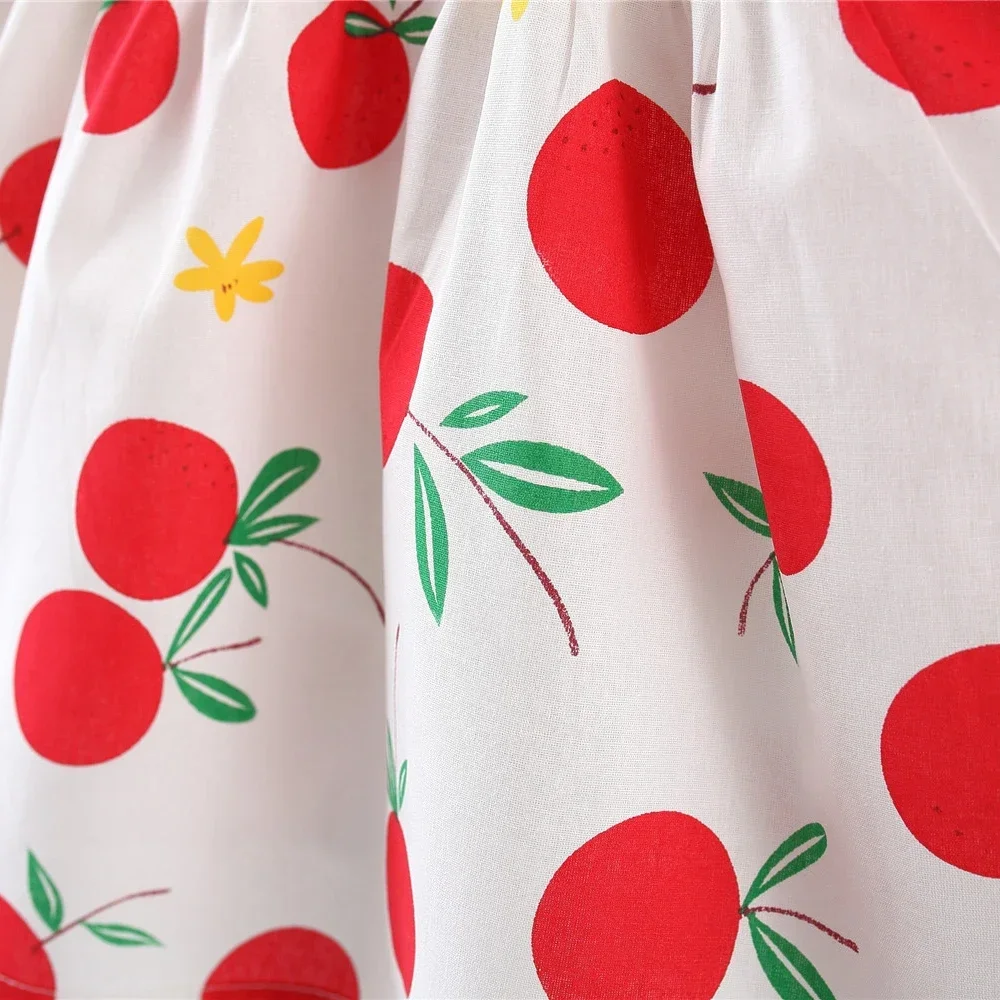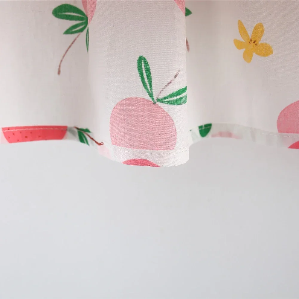 Summer New Girls Dress + Hat 2-Piece Fruit Print Small Fresh Bow Halter Small Flying Sleeve Tmall Princess Dress