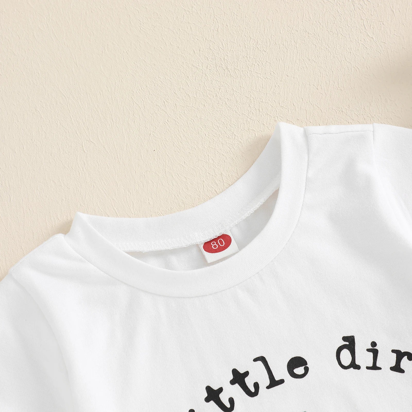Toddler Boy Shorts Set Letter Tractor Print Short Sleeve Round Neck T-Shirt with Solid Shorts 2Pcs Outfit